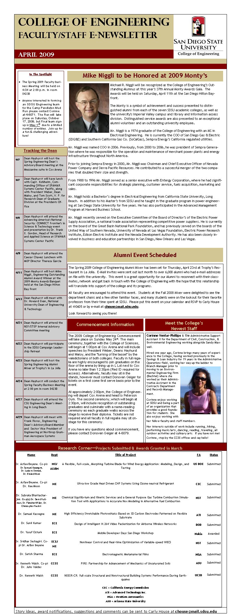 [Staff] April 2009 College of Engineering Faculty/Staff E-Newsletter