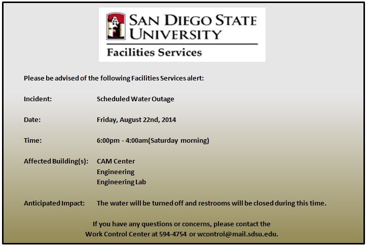 From: Facilities Services Work Control Center [mailto:wcontrol at mail.sdsu.edu]