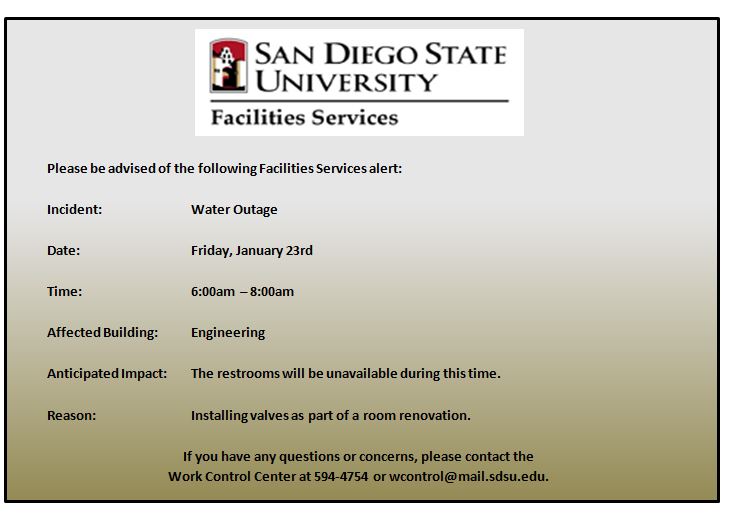 From: Facilities Services Work Control Center [mailto:wcontrol at mail.sdsu.edu]