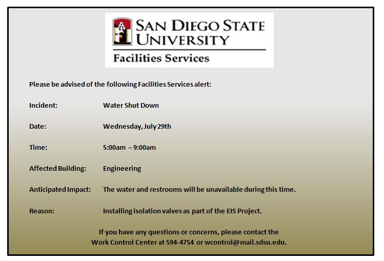 From: Facilities Services Work Control Center [mailto:wcontrol at mail.sdsu.edu]