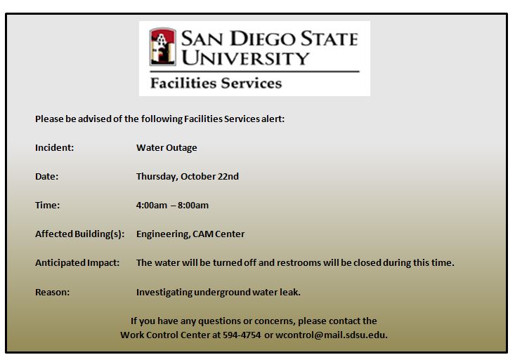 From: Facilities Services Center Facilities Services [mailto:facilitiesservices at mail.sdsu.edu]