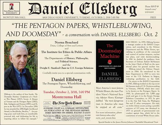I just wanted to send you a quick update for the Oct 2nd event with Daniel Ellsberg and share the great flyer made by Brad Redmon in History.