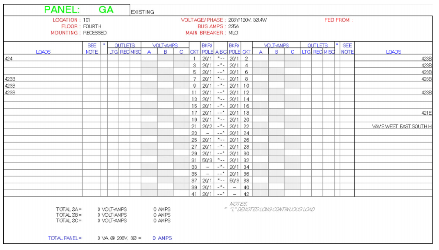 Panel GA schedule (not all circuits are labeled, so please contact me if