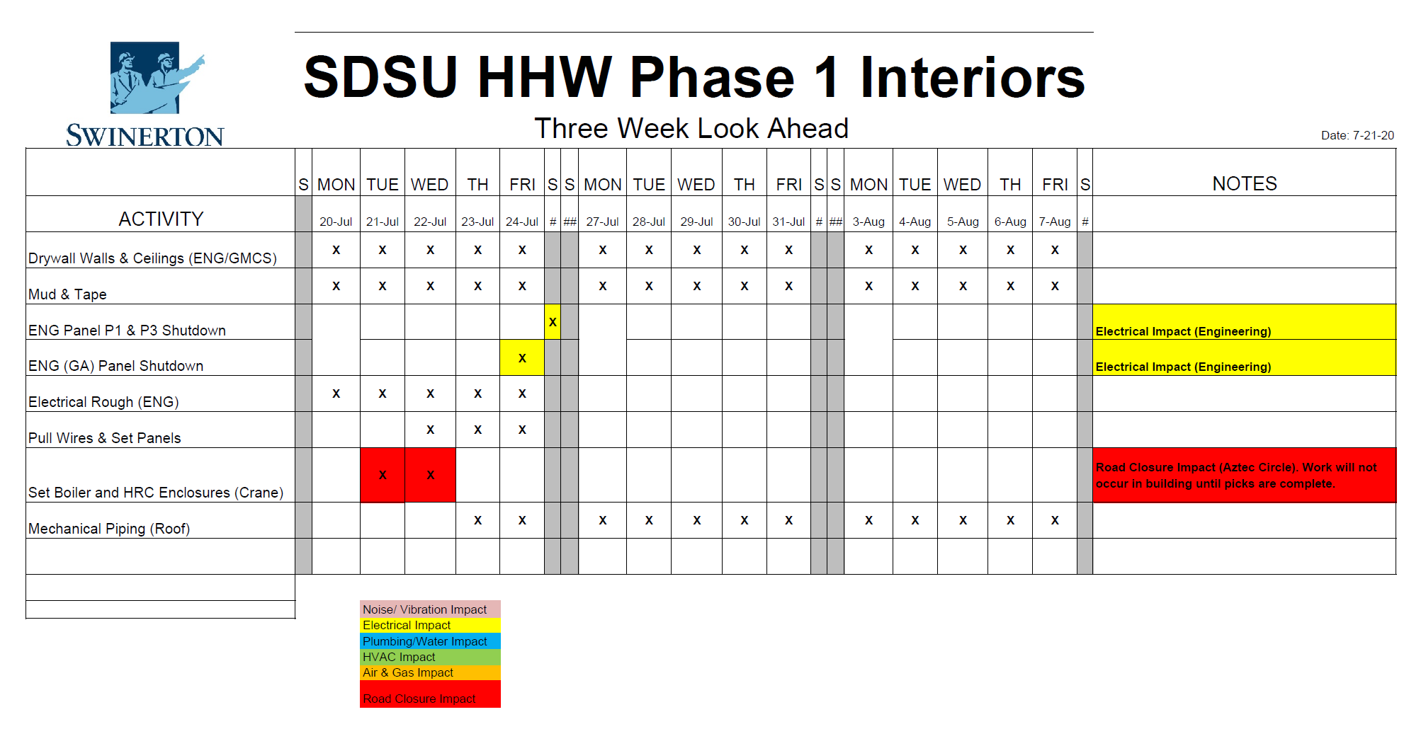 *Please review "Three Week Look Ahead" schedule below.*