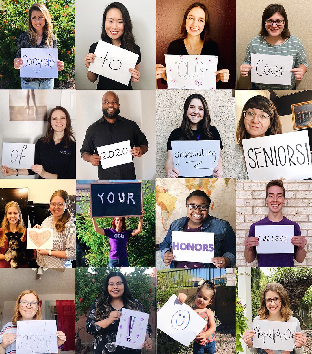 collage of 16 photos to help advertise the SDSU virtual commencement on May