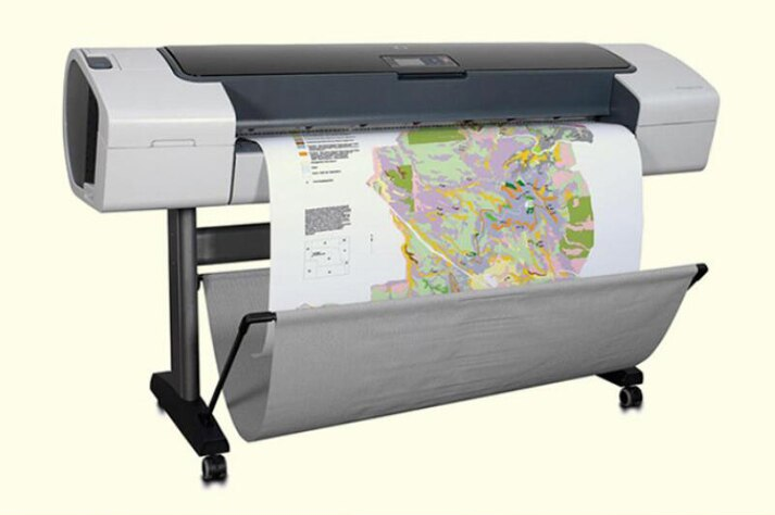 The HP Designjet T1100ps color plotter that was replaced by the new Canon